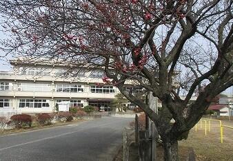 栃本小で、一番に春の訪れを告げる紅梅です。