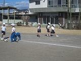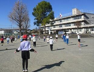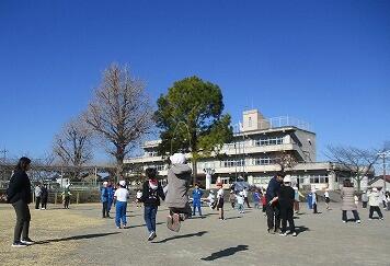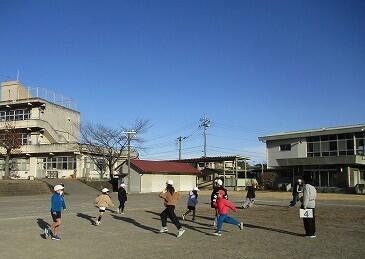 じゃんけんで2つに分かれて、ドッジボールをしたり、上級生が鬼になった鬼遊びをしたりしていました。