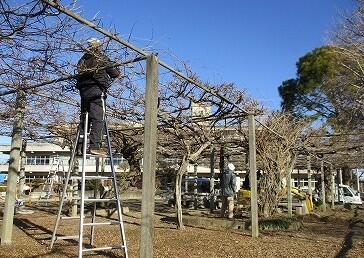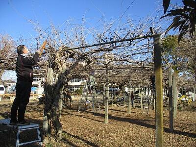 1月31日(土)に栃本小学校卒業生有志の皆様による、毎年恒例の「藤棚の剪定」が行われました。