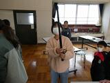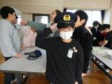 次に、警察官が身に着けているものについて説明がありました。警察手帳、警棒、帽子、手錠、防刃衣などを実際に目にして、手にして、身に付けさせていただきました。